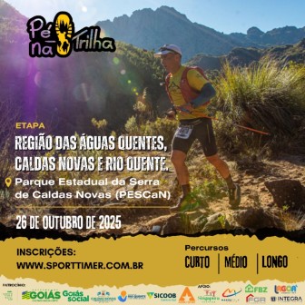 - A Prova Circuito Pé na Trilha, doravante denominada EVENTO, será realizada no dia 26 de Outubro de 2025, com largada e chegada no Parque Estadual Serra de Caldas Novas/PESCAN, Caldas Novas– GO.