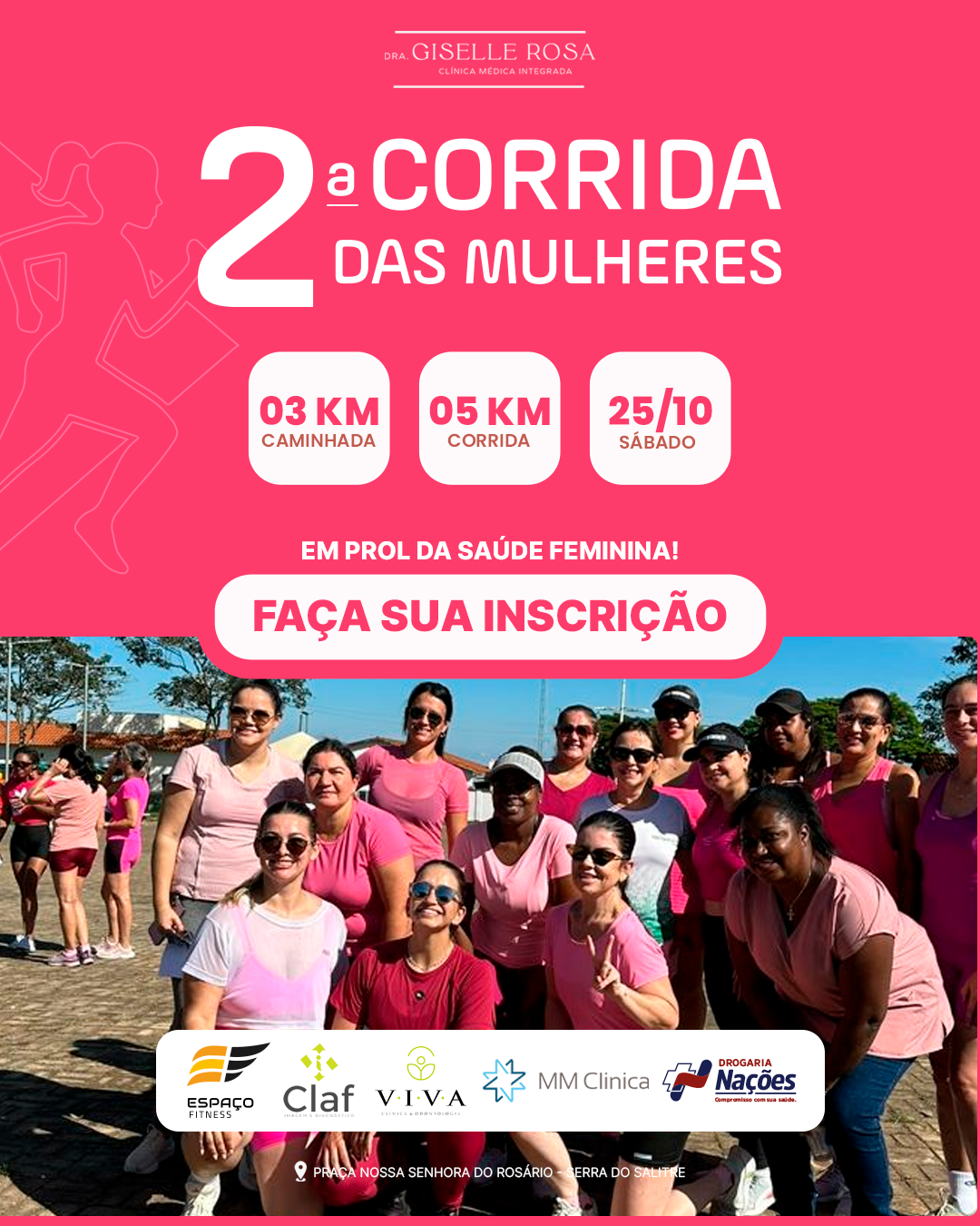 - A Clínica Dra. Giselle Rosa tem a alegria de promover a 2ª Corrida e Caminhada em Prol da Saúde Feminina!